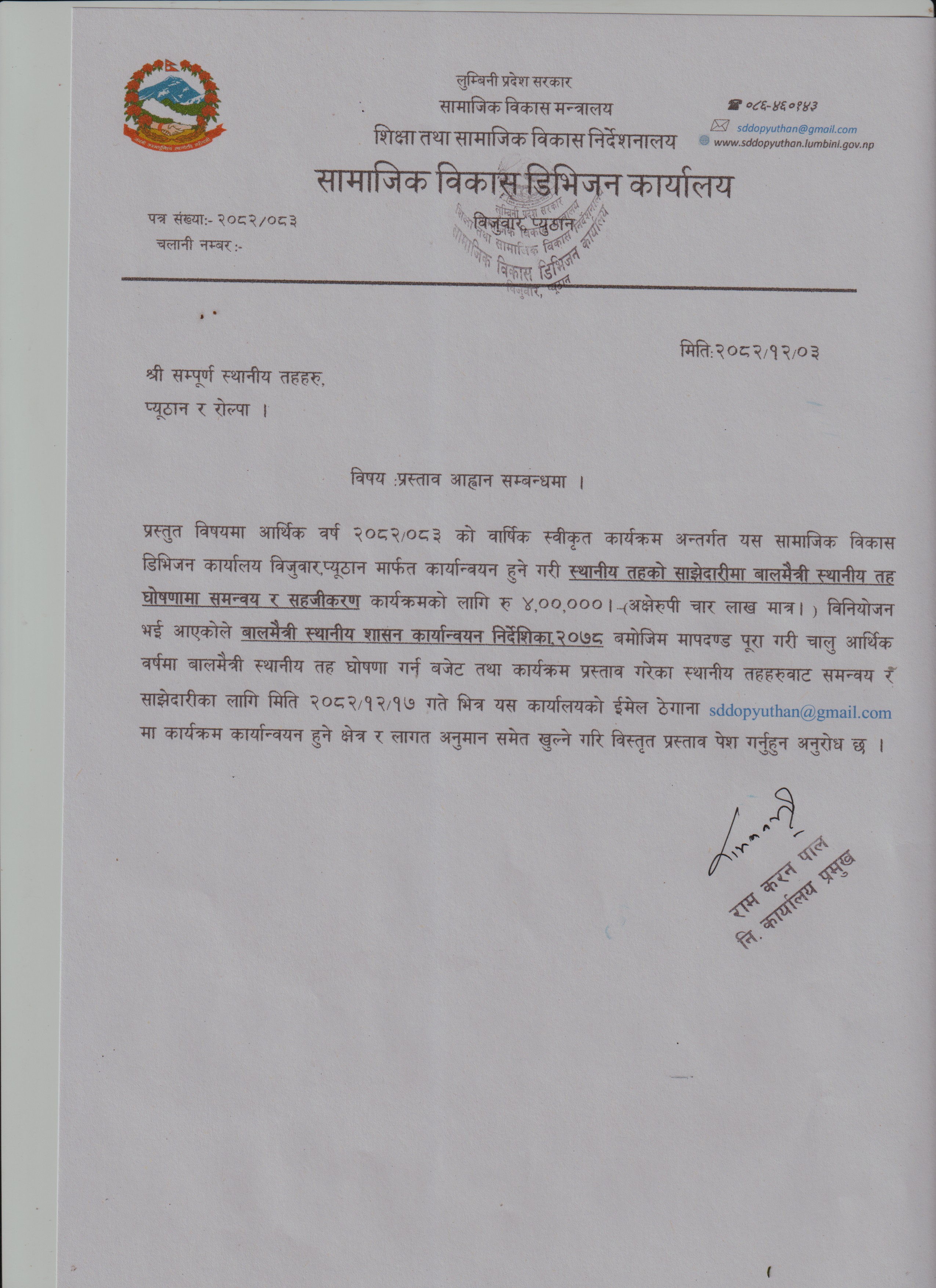 ५९‌‍औ राष्ट्रिय बाल दिवसको अवसरमा प्यूठान जिल्लाका सामुदायिक तथा संस्थागत विद्यालयमा राखिएको कार्याक्रमको झलक